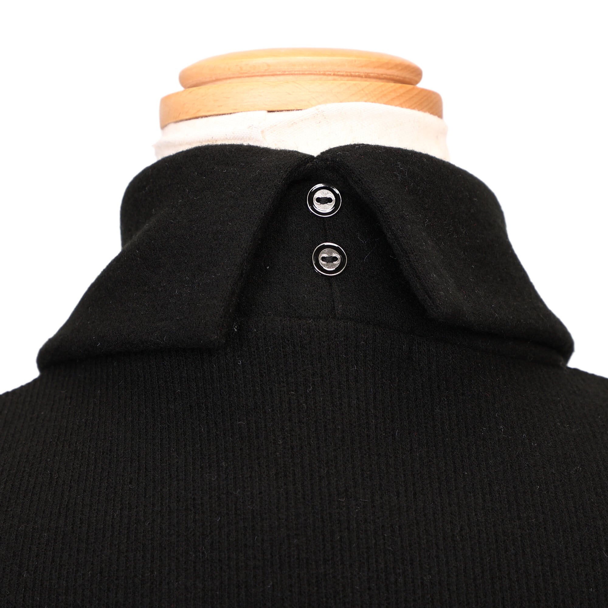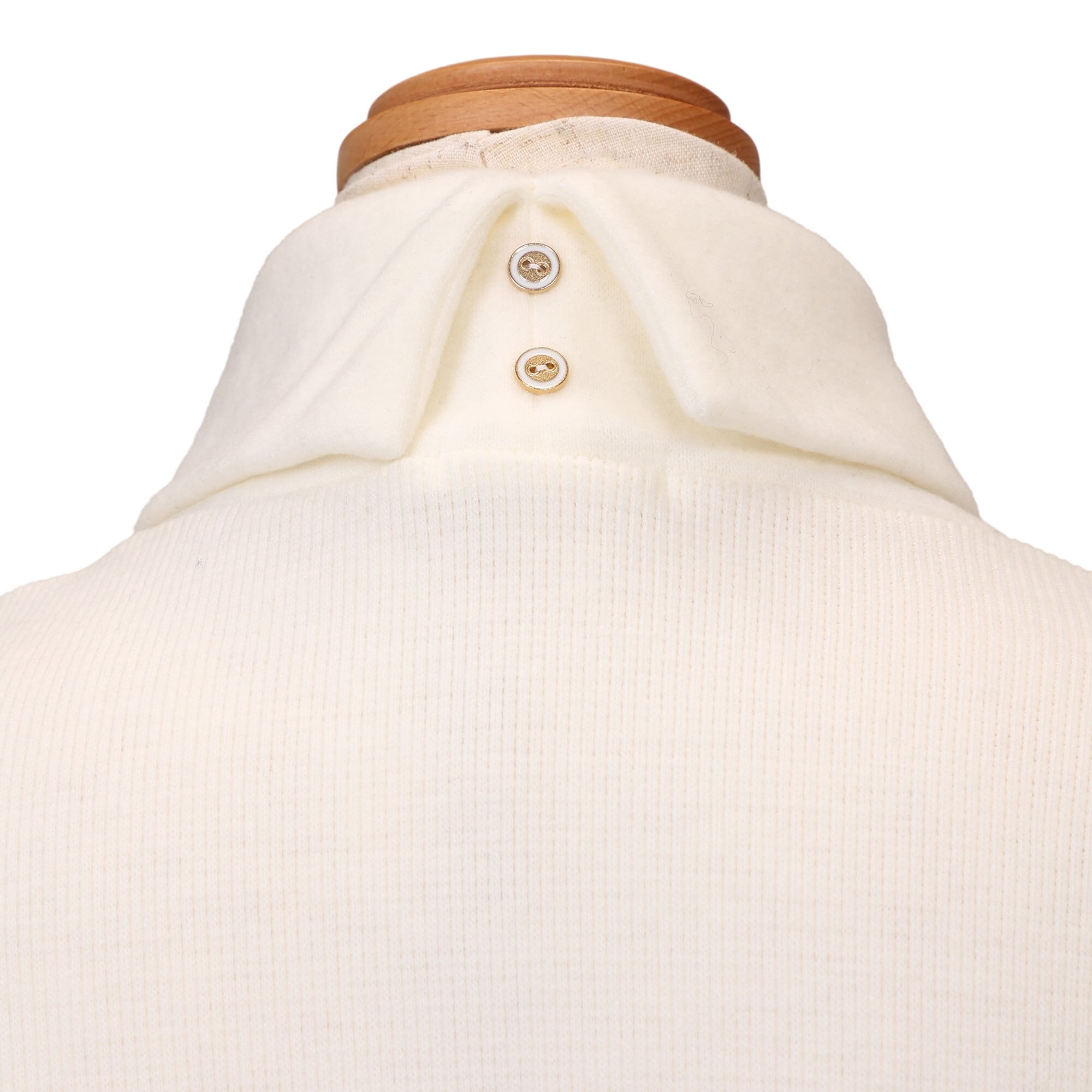 ラグジュアリー感のある首元のロゴワッペンと後ろ首元のボタンがポイントです