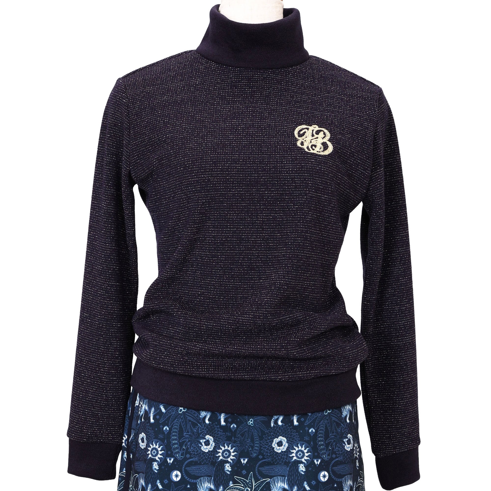 上品に輝くゴールド・シルバーラメニットのモックネック