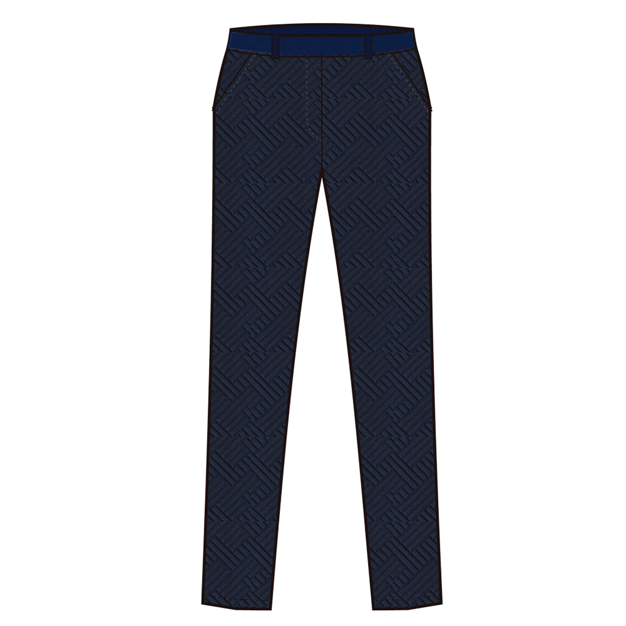 前身には柔らかい肌触りのキルト生地、そして後身頃には裏起毛のストレッチ生地を使用したロングパンツ
