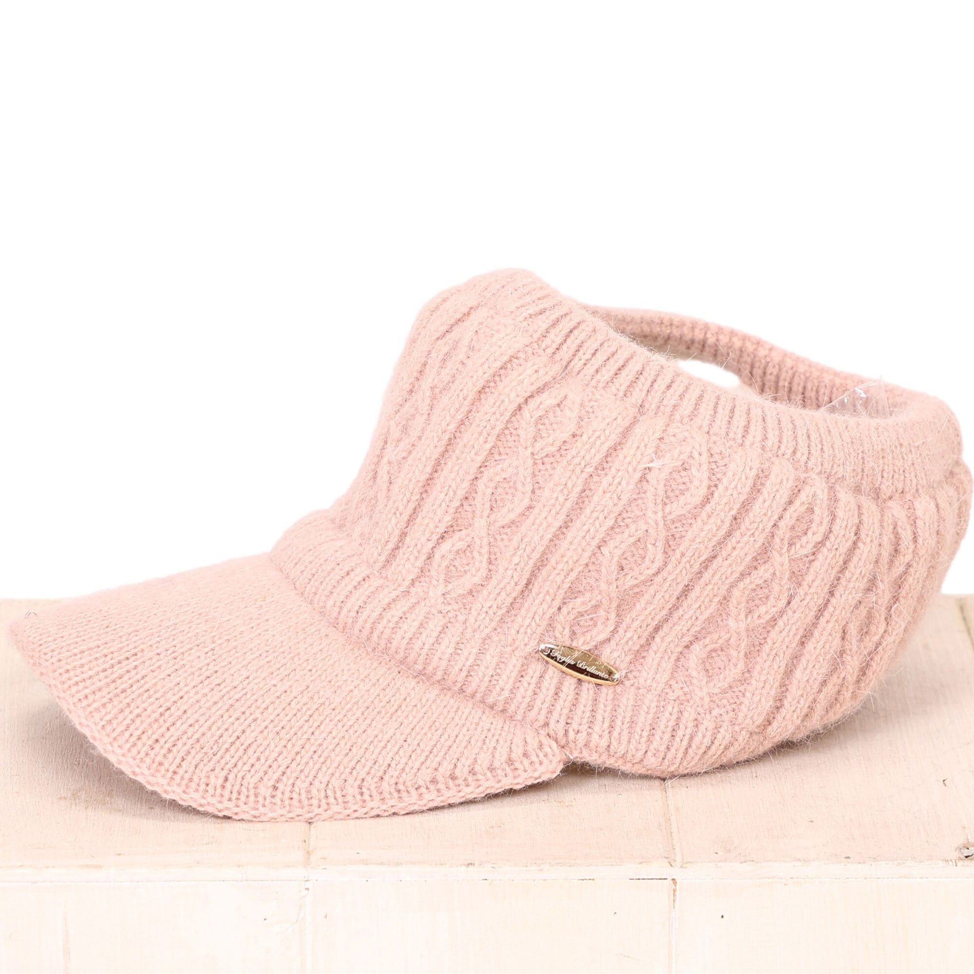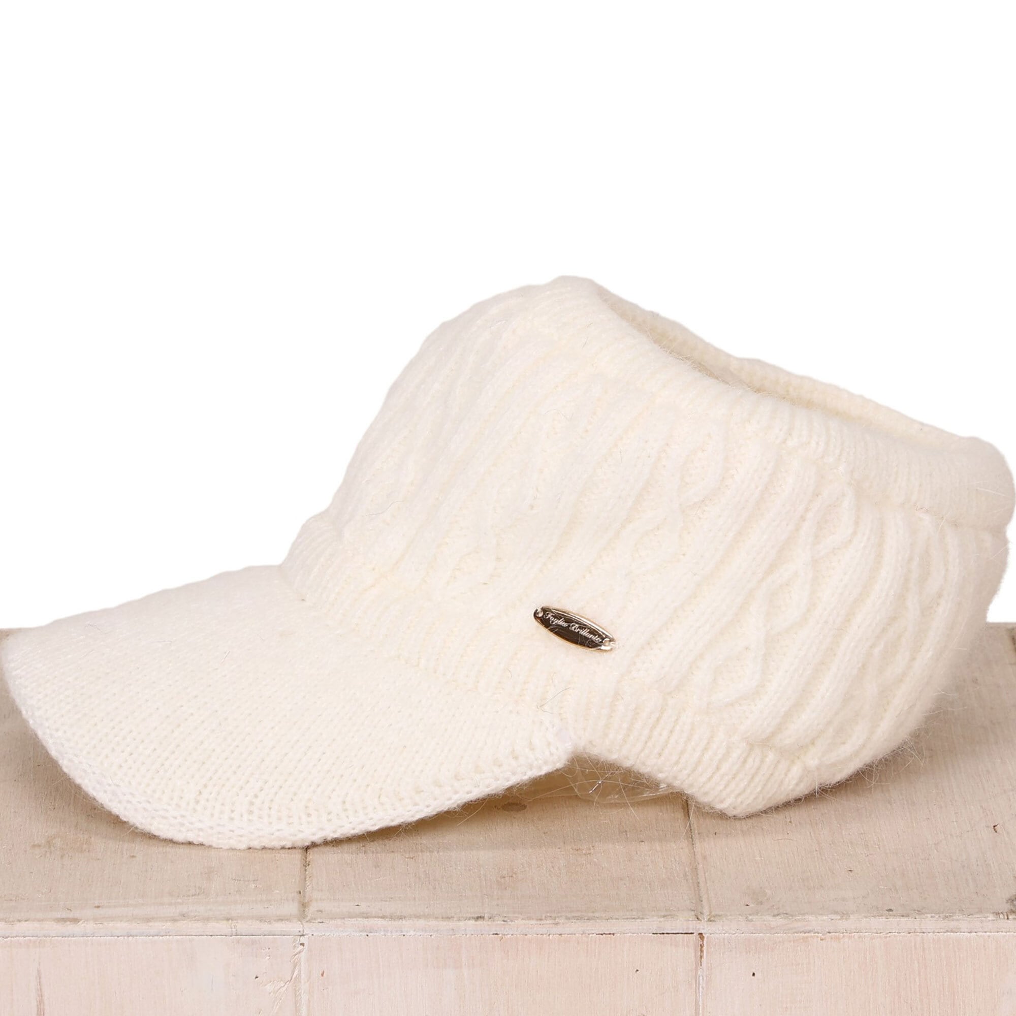 フワフワのケーブルニット編みが可愛らしい、ニットサンバイザー