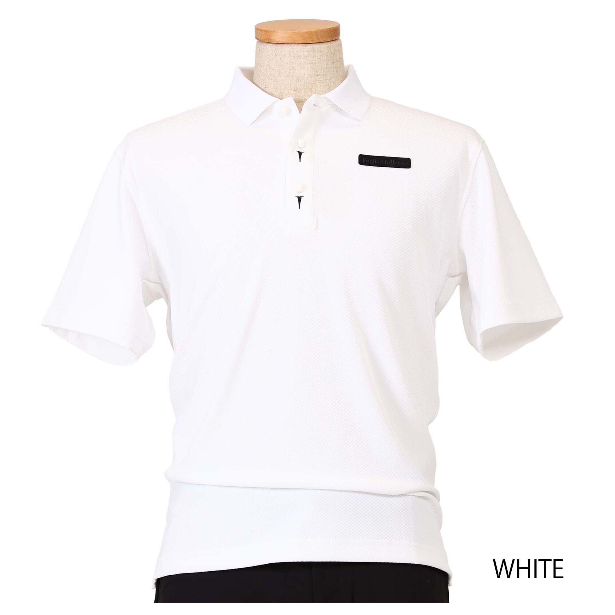 ゴルフボールの形状をしたフロントボタンに、ティーをあしらった刺繍がポイントの半袖ポロ