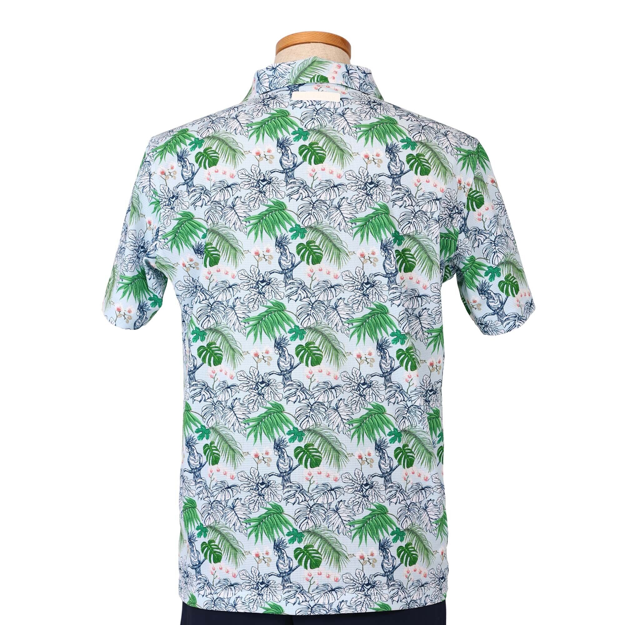 メンズアイテムとして初登場のフルオープン開襟シャツ リゾート感満載のプリント柄が魅力です 優しく洗練された色合いなので、上品に着こなしていただけまます 透けづらいメッシュ生地で、サラサラ快適です 夏のリゾートゴルフはもちろん、普段使いも素敵です 【Quality】 本体:ポリエステル100% 【Size】 M:身幅52cm 着丈68cm 袖丈22cm L:身幅55cm 着丈70cm 袖丈23cm LL:身幅60cm 着丈72cm 袖丈24cm 【展開カラー】 752(BLUE BIRD) 753(BEACH RESORT)