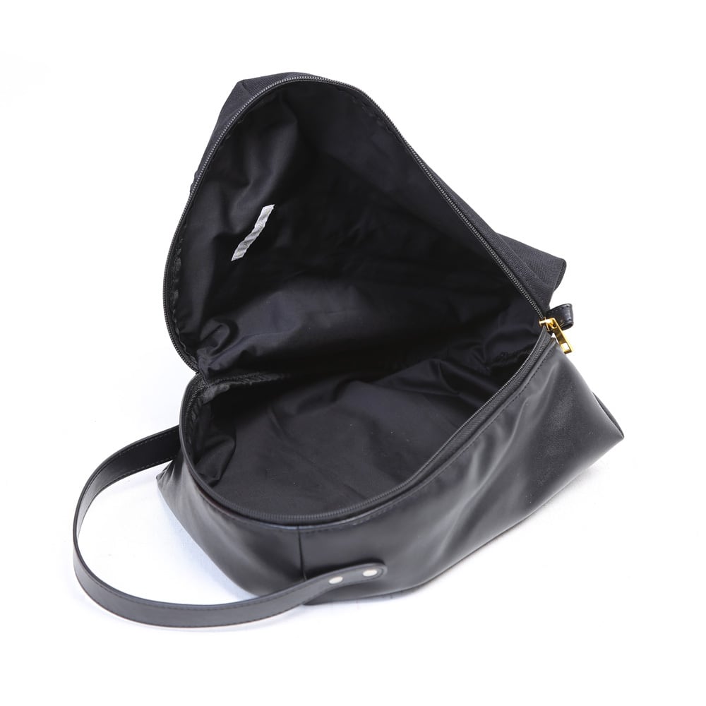 少しビンテージ感を感じる素材の表情が特徴の帆布生地のシューズケース 女性でも男性でも使用できるサイズの仕様になっております 持ち手と背面が合皮素材で、スタイリッシュな仕上がりになっております ※ホワイトの刺繍糸カラーは身生地同色の漂白白になります ※ファスナー引手は身生地同色に変更となります 【Quality】 本体:綿100% 別布:合皮 【Size】 One Size 縦:27㎝(持ち手含まず) 横:20㎝ マチ:14㎝ 【展開カラー】 001(BLACK) 002(WHITE) 003(NAVY) 004(OLIVE)